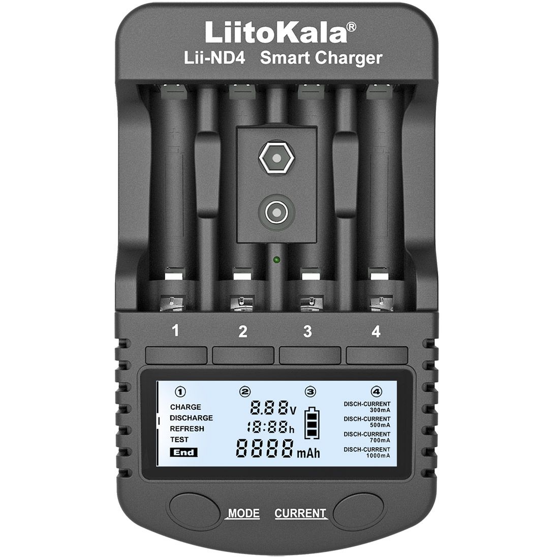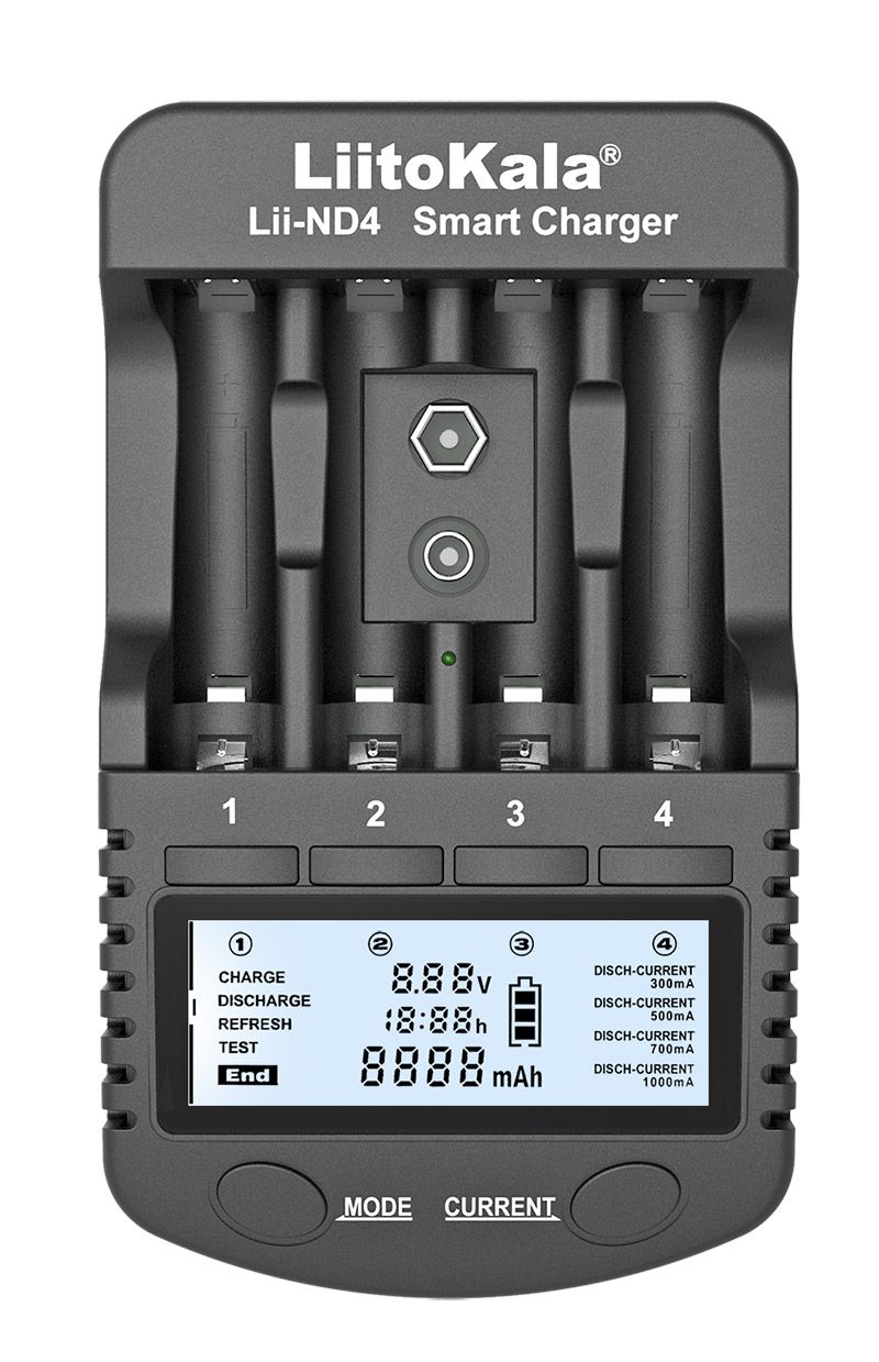 Універсальний зарядний пристрій Liitokala Lii-ND4 для заряду пальчикових Ni-MH або Ni-Cd акумуляторів або акумулятора типу "крона" 6F22.