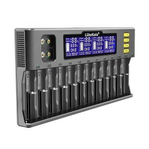 Універсальний зарядний пристрій LiitoKala Lii-S12 – багатофункціональний дванадцятиканальний зарядний пристрій із зручним керуванням, інформативним LCD дисплеєм на якому відображається відсоток заряду, напруга та тип встановленого акумулятора. Автоматично розпізнає літій-іонні, нікель-металгідридні і нікель-кадмієві акумулятори, також заряджає літій-фосфатні (LiFePO4) акумулятори, має 12 + 2 слотів для заряду і може одночасно заряджати від 1 до 12 акумуляторів. ляторів АА, ААА, С (R14), A, SC, 14500, 16340, 18350, 18650, 21700, 20700, 26650 та інші. Також має два слоти для заряду акумуляторів у форматі 6F22 крона.