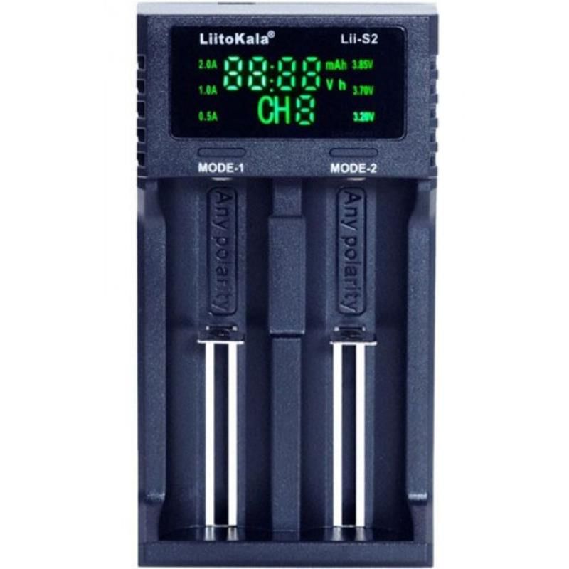 LiitoKala Lii S2 - універсальний зарядний пристрій з двома незалежними каналами і цифровим дисплеєм. Універсальність даного зарядного пристрою полягає в наявності одного рухомого контакту, що дозволяє заряджати акумулятори різного розміру: АА, ААА, С (R14), 18650, 14500, 16340, 18500 та ін. Lii-S2 може заряджати акумулятори різного складу - Ni-Mh, Ni-Cd, Li-Ion, LiFePO4. Зарядний пристрій Liitokala Lii-S2 має унікальну функцію - автоматичне визначення полярності вставленого акумулятора.