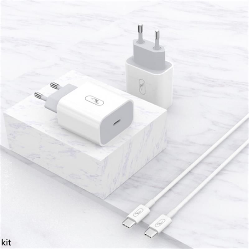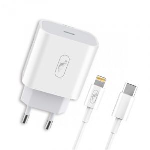 Мережевий USB-С адаптер - 1 USB-С порт - Швидкісна зарядка PD2.0 3A/18W порт - Ергономічний дизайн - Кабель Type-C - Lightning в комплекті