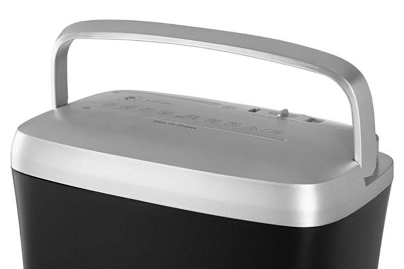 Знищувач документів, кредитних карток та компакт-дисків. Приймач розраховано на одночасне знищення до десяти листків А4. Для знищення дисків передбачено окремий приймач, а для зберігання відходів є зручний контейнер на 21 л. Управління реалізовано за допомогою трьох режимів – Авто, Реверс, а також постійна робота. Тип різки – перехресний, розмір знищеного паперу – 4х35 мм.