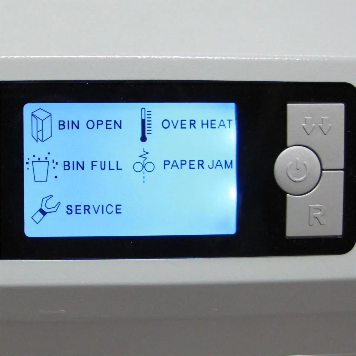 Знищувач документів високої потужності з високим рівнем секретності. Перехресна різка, 5-й рівень секретності, розмір фрагментів 2х15мм. Знищує одночасно до 18 аркушів паперу (70г \ м2). Міцні цільні ножі із загартованої сталі. Укомплектований маслом для ріжучого елемента. Панель має LCD-дисплей, який автоматично сигналізує якщо є перегрів, застрягання паперу, перевищення допустимої кількості листів при знищенні, переповнений кошик. Знищує CD диски, пластикові картки в окремому відсіку. Приймає документи, скріплені скобами або скріпками. Автоматичний старт і стоп, автоматичний реверс. Захист двигуна від перевантажень і перегріву. Коліса для переміщення, обсяг кошика для відходів 60л.