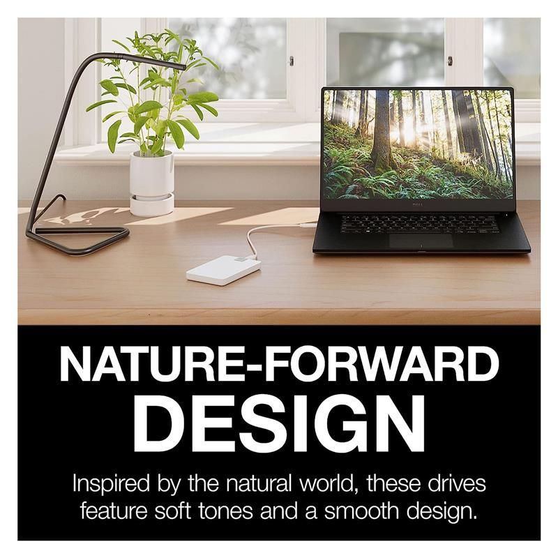 Прийшов новий стандарт портативних сховищ Seagate – Ultra Touch HDD. Прагнучи стійкого розвитку, цей диск містить не менше 30% перероблених матеріалів за вагою і має 100% упаковку, придатну для вторинної переробки. Гладкий, природний дизайн – цей легкий та портативний накопичувач привнесе у ваш робочий простір м’яку елегантність. Крім того, він сумісний із USB-C за принципом plug-and-play з ПК, Mac та Chromebook.