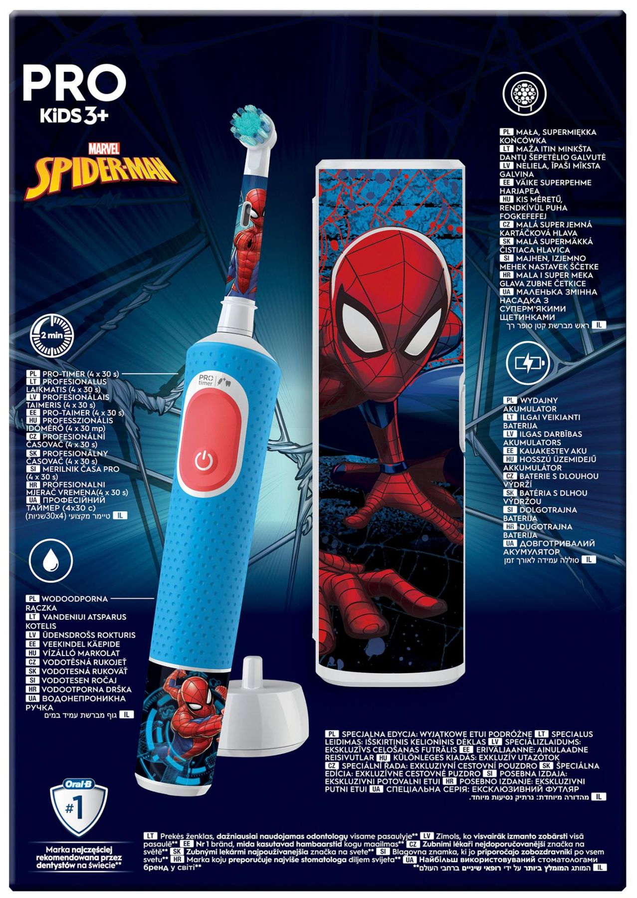 Електрична зубна щітка Braun Oral-B D103.413.2KX Spider-Man розроблена командою спеціалістів спеціально для дітей віком від 3 років (під наглядом батьків її можна використовувати і раніше). Дизайн з одним із мультяшних сюжетів перетворює рутинну побутову процедуру на захоплююче заняття, яке допоможе долучити до чищення зубів навіть найменших діток, які ще не розуміють користі цієї процедури.