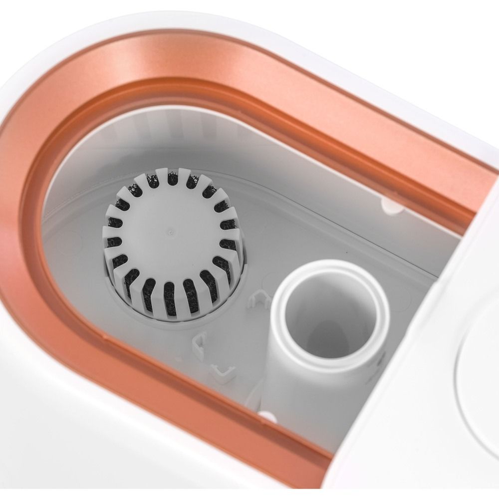 Щоб заповнити контейнер водою, достатньо відкрити верхню кришку. Контейнер має об’єм 4.5 літра, тому вам потрібно буде доливати воду не частіше ніж один раз на день. Відсутність кутів і виступів усередині дає змогу легко утримувати контейнер у чистоті: достатньо протерти його м’якою серветкою, щоб повністю видалити наліт із поверхні.