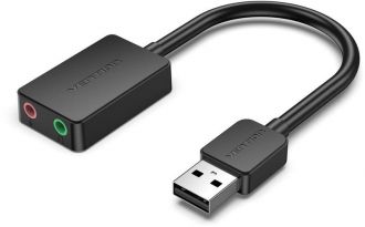 Звукова карта Vention USB Sound Card 2.0 Channel 0.15M, Black (CDYB0) підключається до ноутбука за допомогою порту USB і має 2 виходи: для мікрофона і для навушників. Установка драйверів - не потрібна.